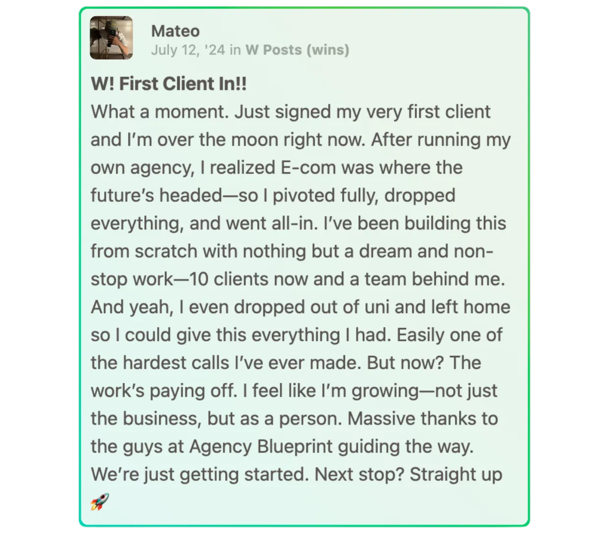 Inside Agency Blueprint, you’ll get direct access to an experienced agency owner who’s built and scaled multiple six- and seven-figure service businesses.